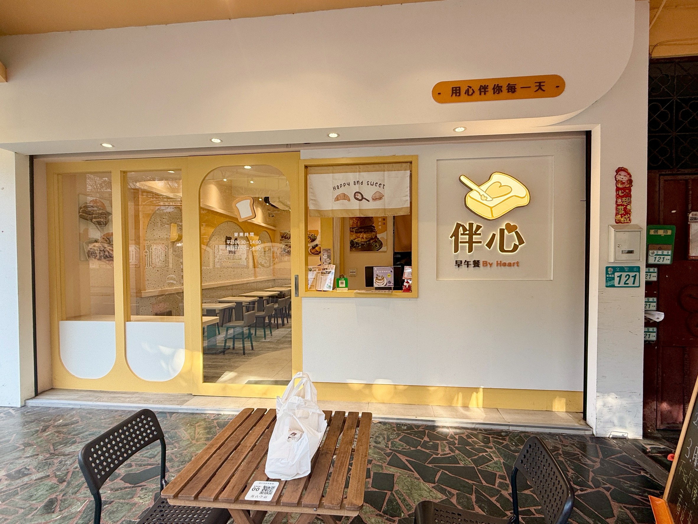 伴心早餐《板橋文聖店》,就位在文聖國小對面,距離捷運江子翠站步行約15分鐘的距離