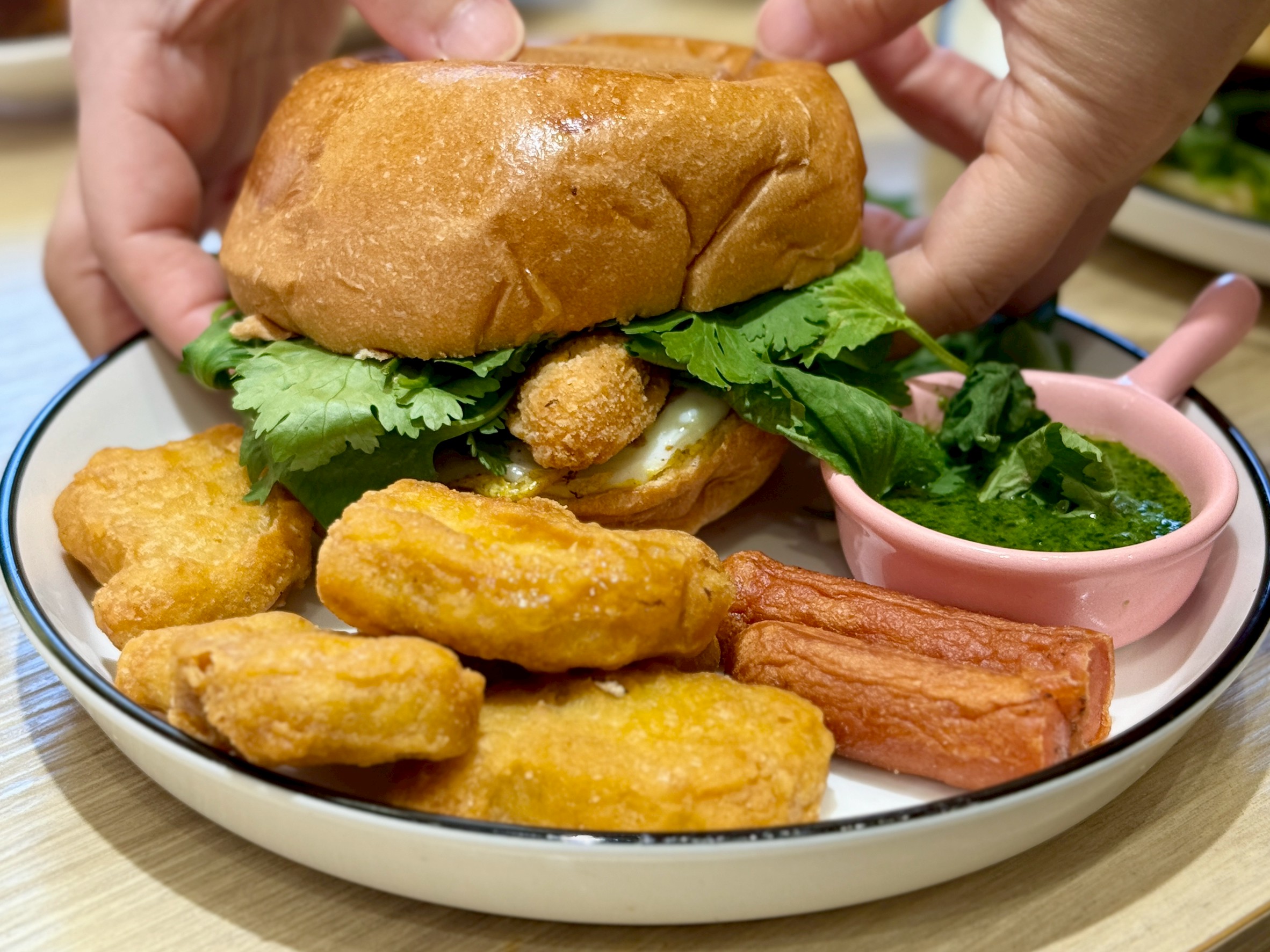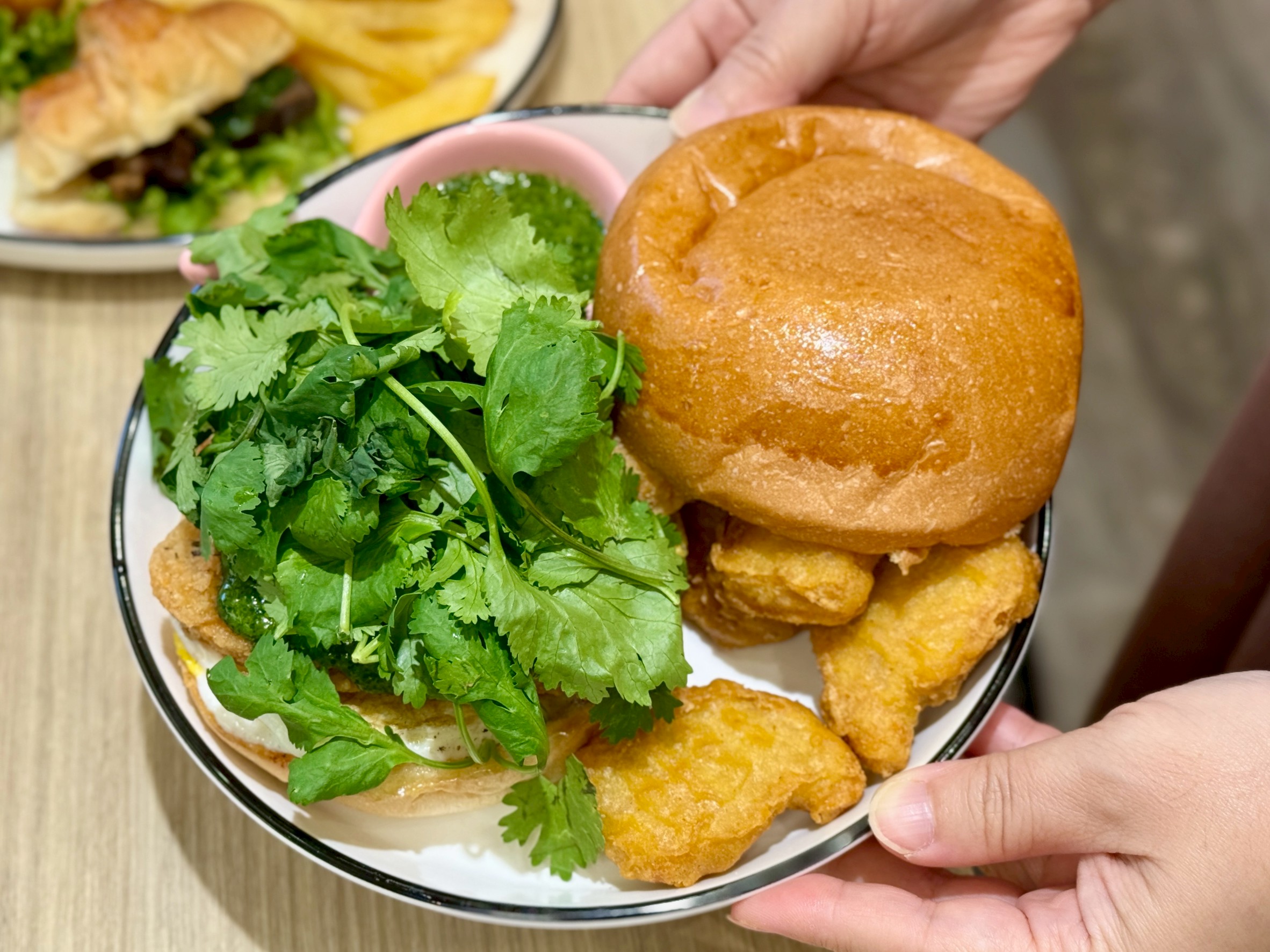 這次的聖誕限定以「香菜控最愛」為主題,漢堡裡加入滿滿新鮮香菜,搭配特調香菜醬與酥脆雞柳,咬下去每一口都散發濃郁香氣,香菜控一定愛!