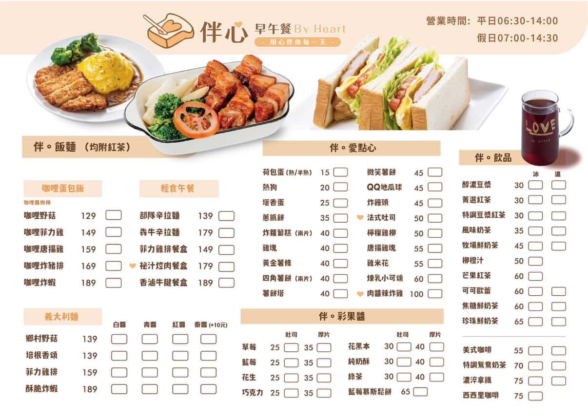伴心早餐《板橋文聖店》菜單