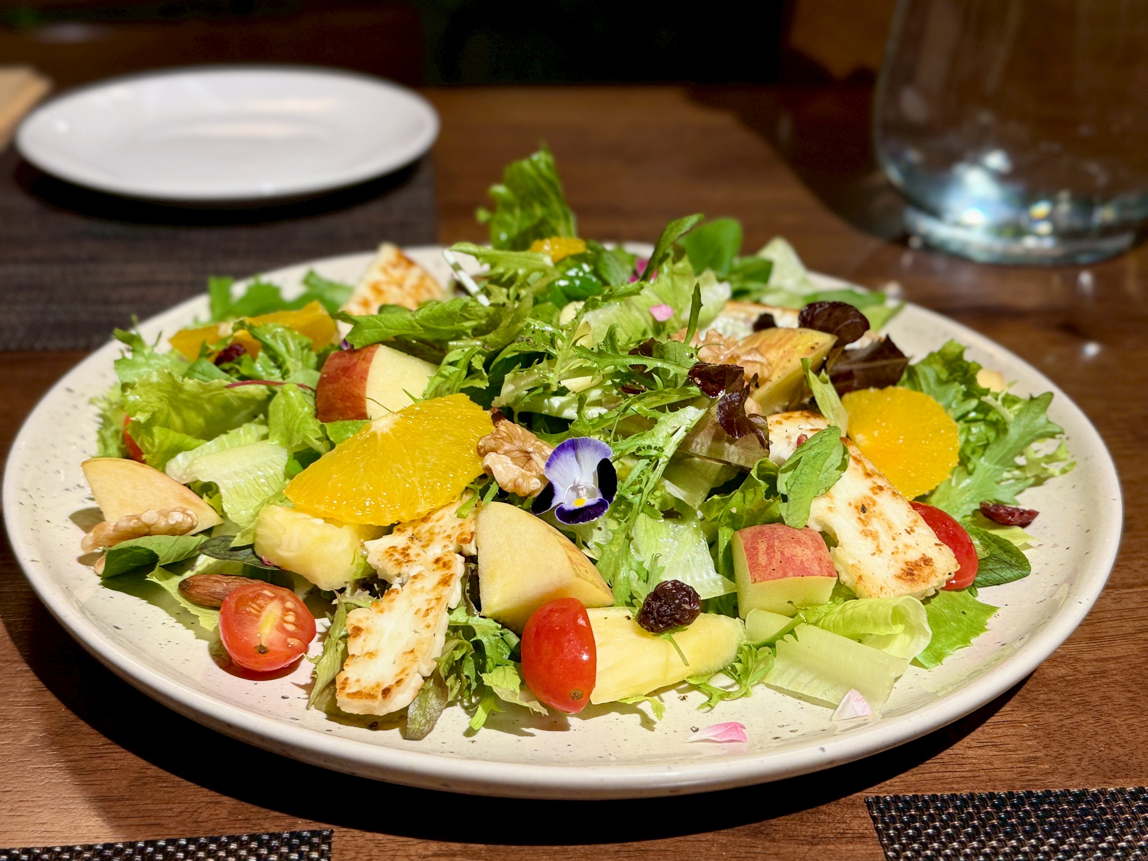 水果沙拉的口感清爽,是開胃的最佳選擇,醬汁調味輕盈,搭配新鮮生菜的爽脆,滿滿一整盤份量不少
