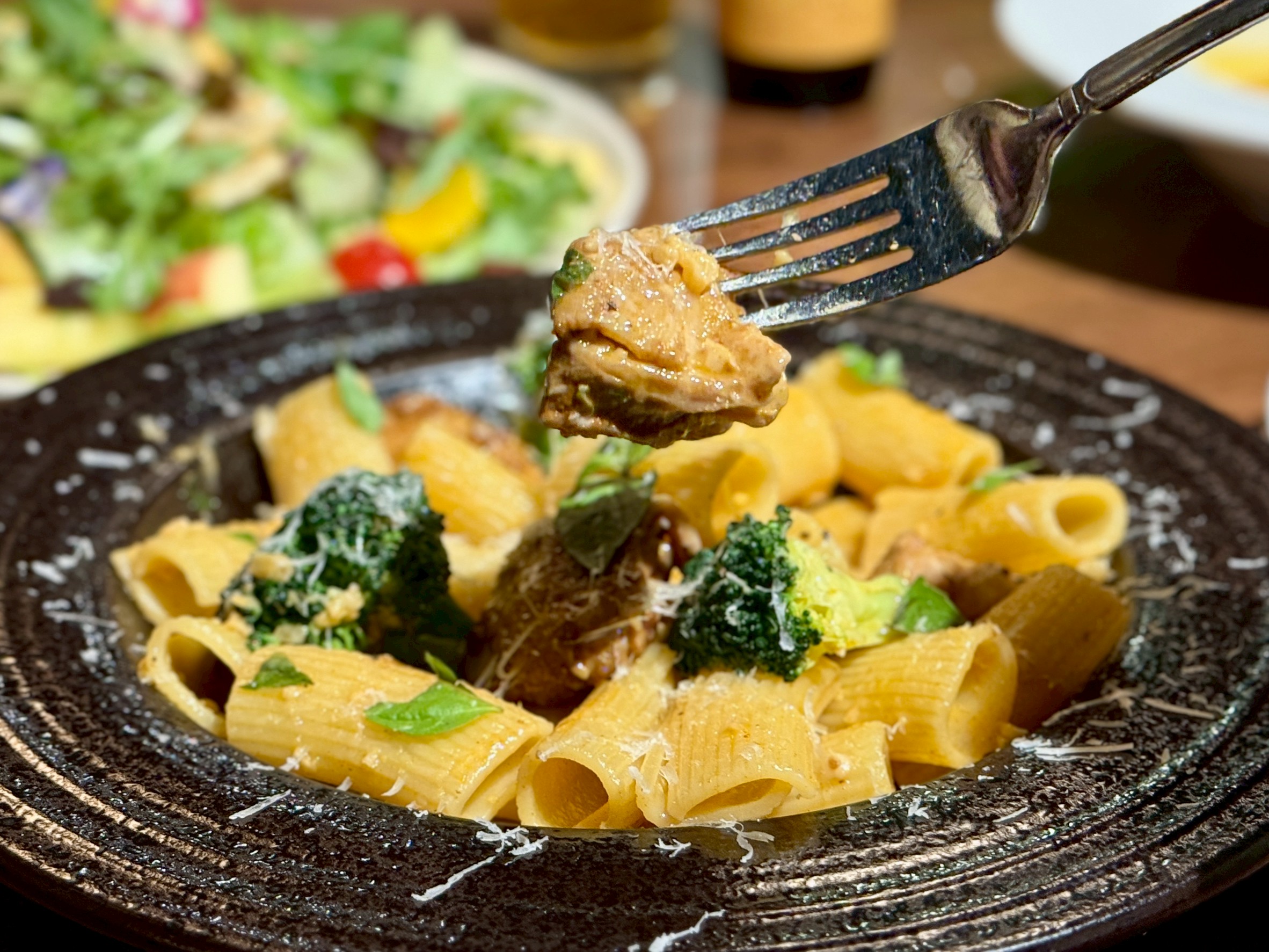 這道主食我個人也很喜歡,超粗的筆管麵很Q彈有嚼勁,吸附著蕃茄奶油醬汁很美味,雞肉熟度也恰道好處十分鮮嫩,和小朋友一下子就完食