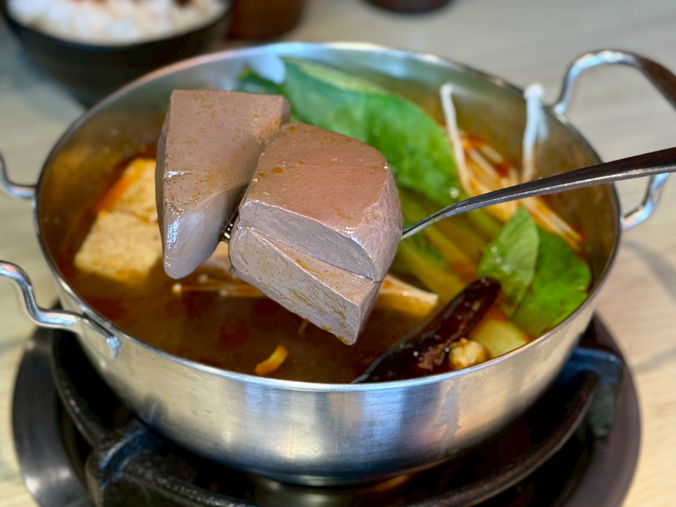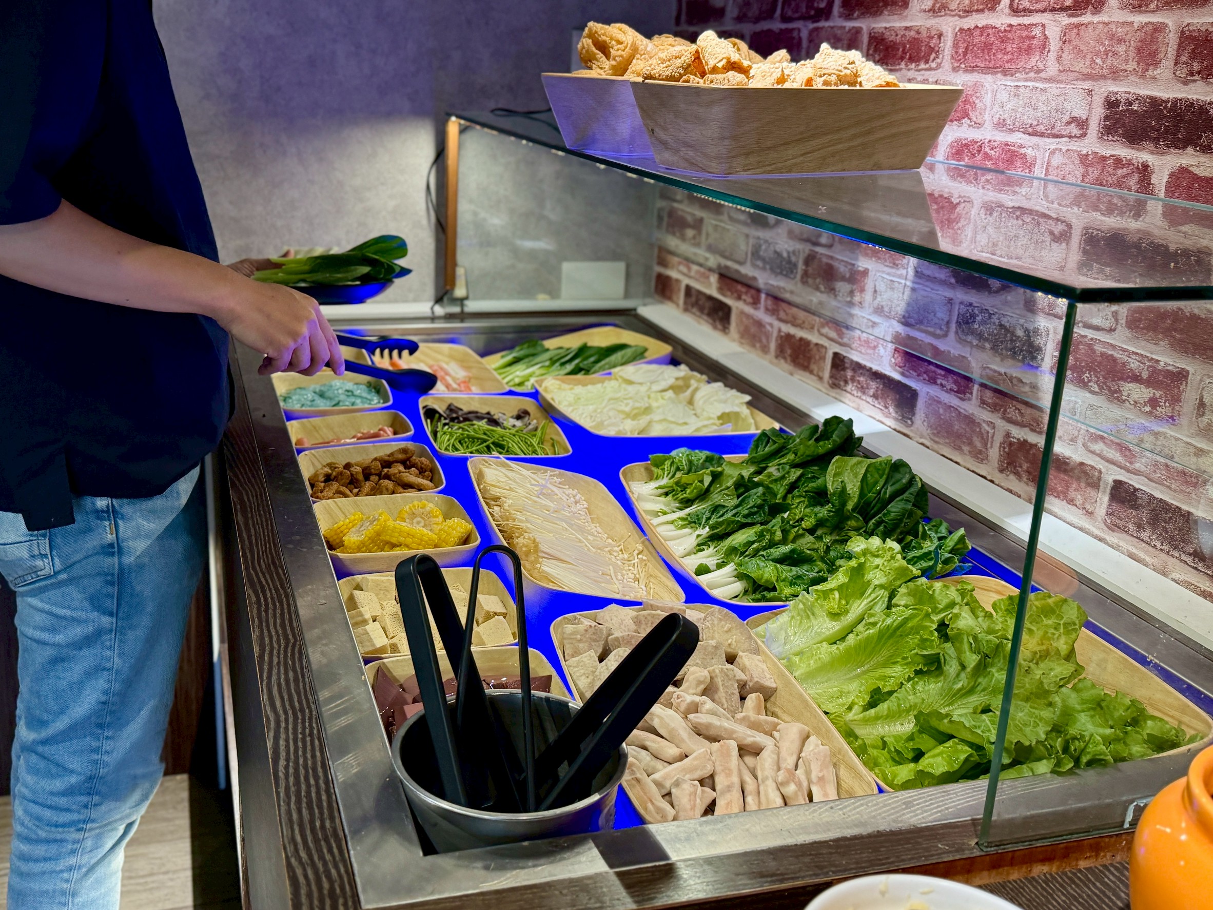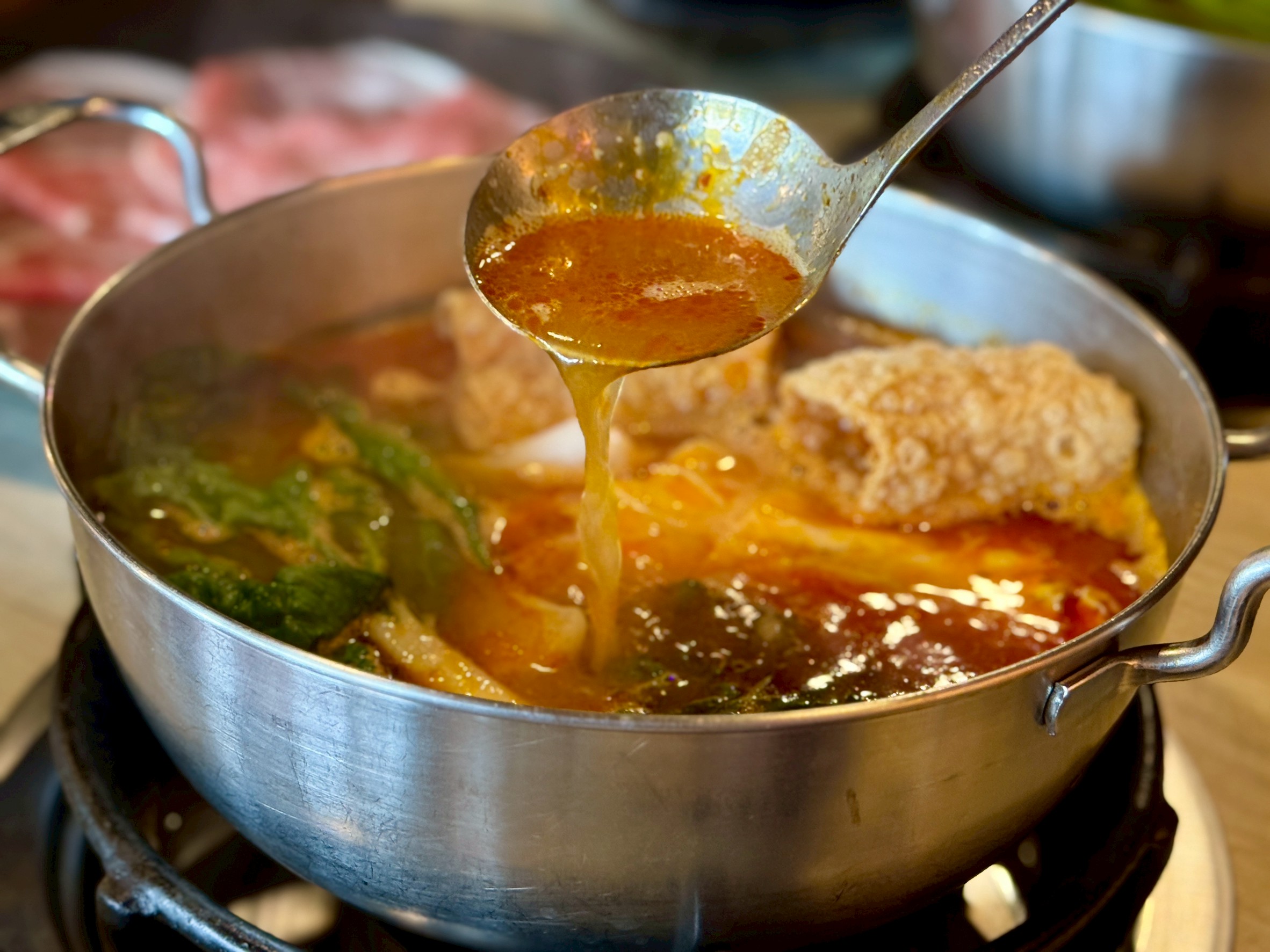 沒想到這裡也吃的到南洋風味的鍋底,新加坡蝦醬叻沙鍋看起來紅通通的,但其實不會很辣,湯底結合了濃郁的椰奶香、辛香料的層次感
