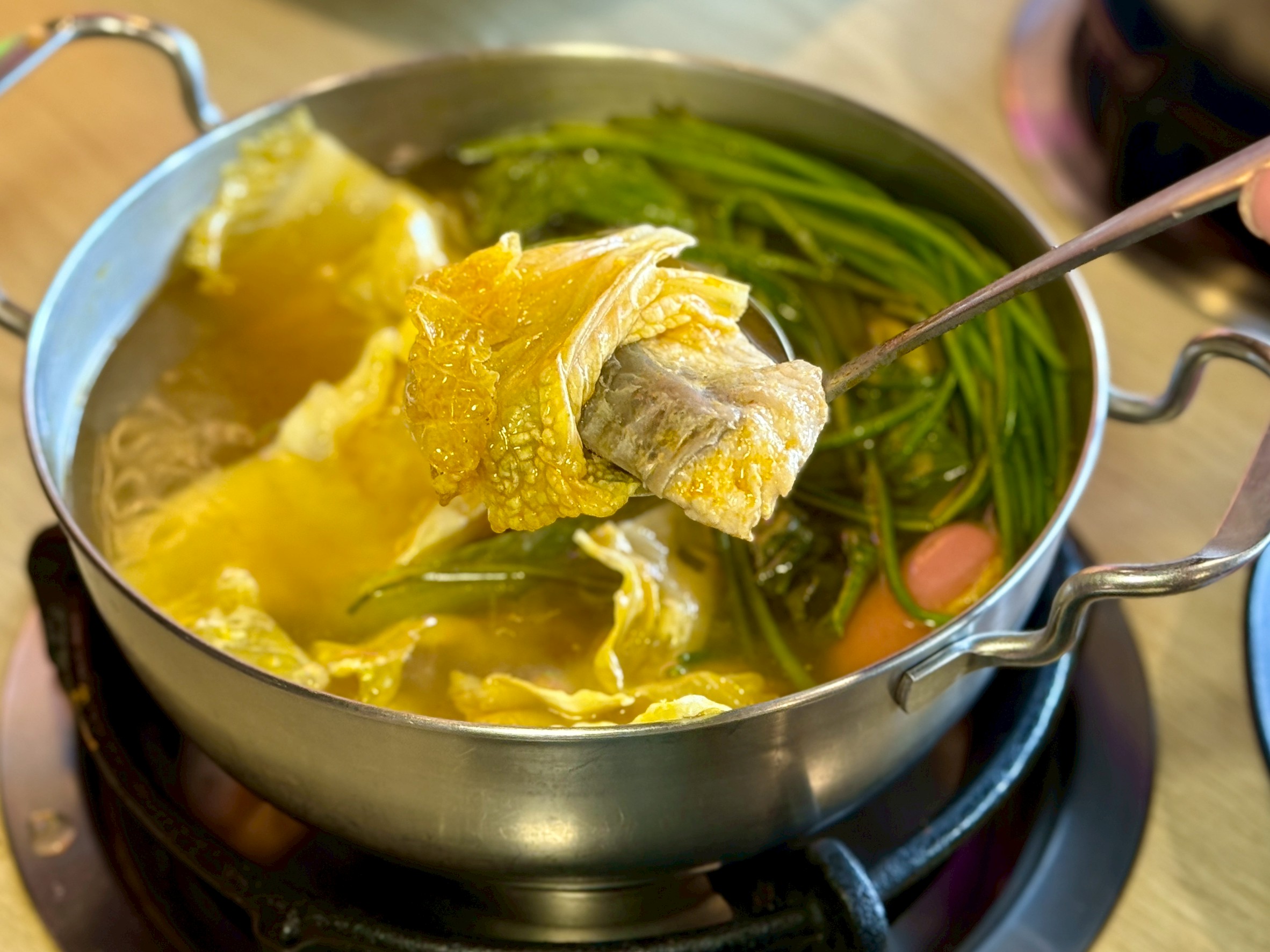 老師傅酸菜魚酸中帶辣十分開胃,涮煮海鮮、肉類都十分夠胃,我覺得辣度比新加坡蝦醬叻沙鍋來說再更辣一點