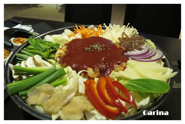 這是兩人份 真的很大鍋 韓鶴位在省道旁 千葉火鍋附近外面是用黑色不知道什麼石頭 挑高的設計看起來很貴的感覺但是門口又有個氣球人會一直漂所以我只要騎摩托車經過…