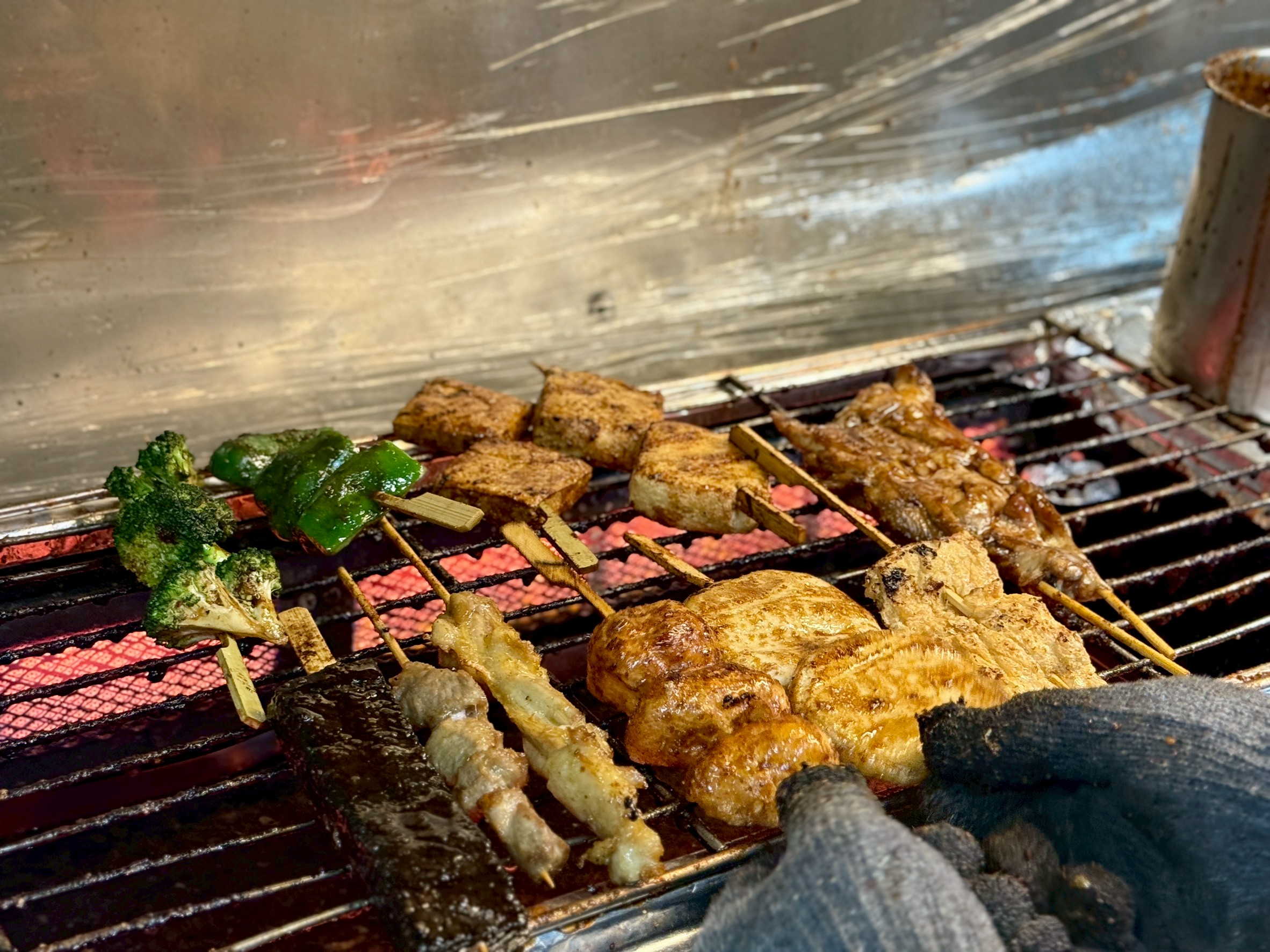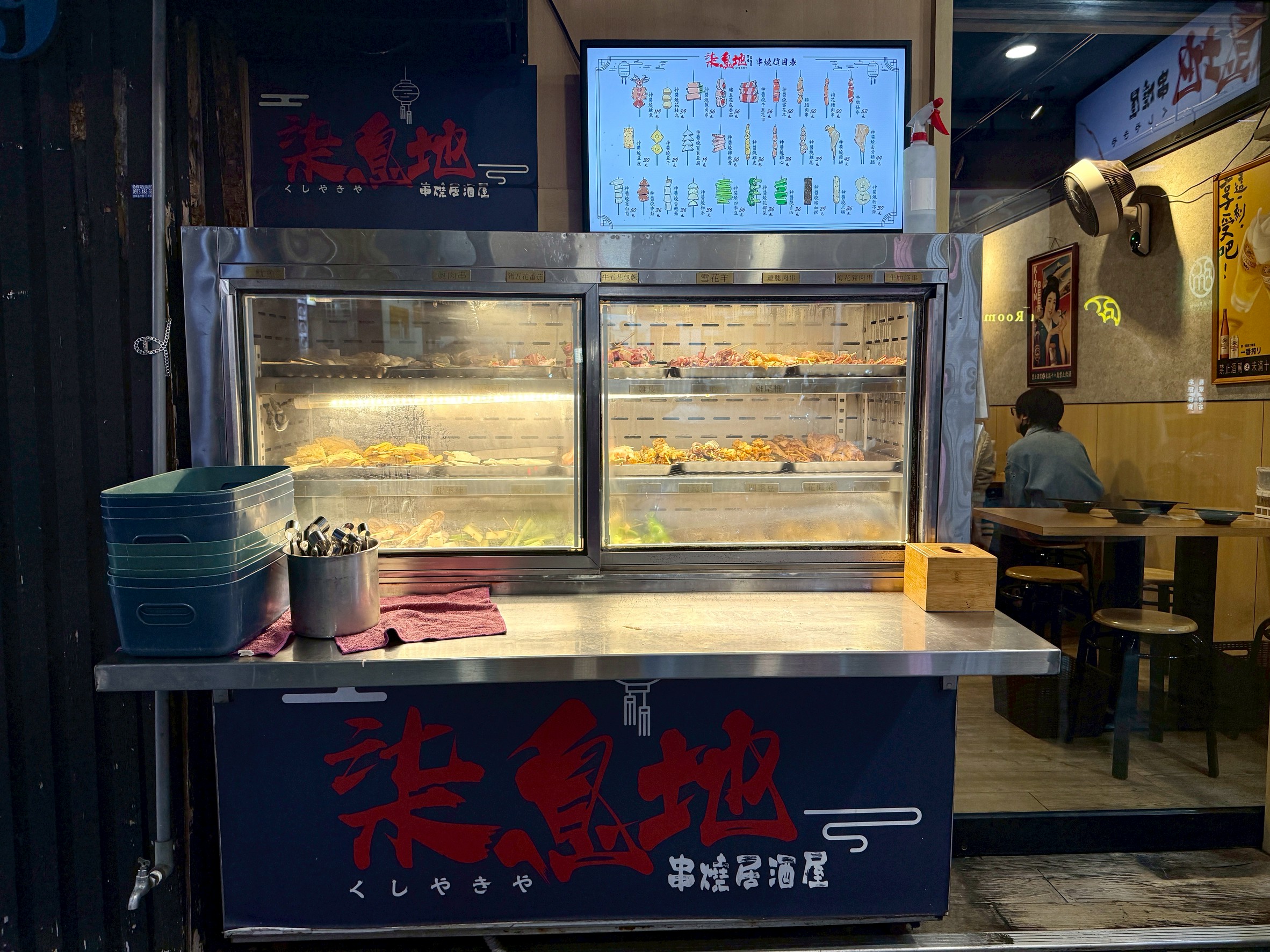 各式串燒整齊的擺放,柒息地並獲得 ISO 22000 與 HACCP 雙重食品安全認證的串燒居酒屋。從食材到製程,層層把關,只為讓顧客吃得安心、聚得放心
