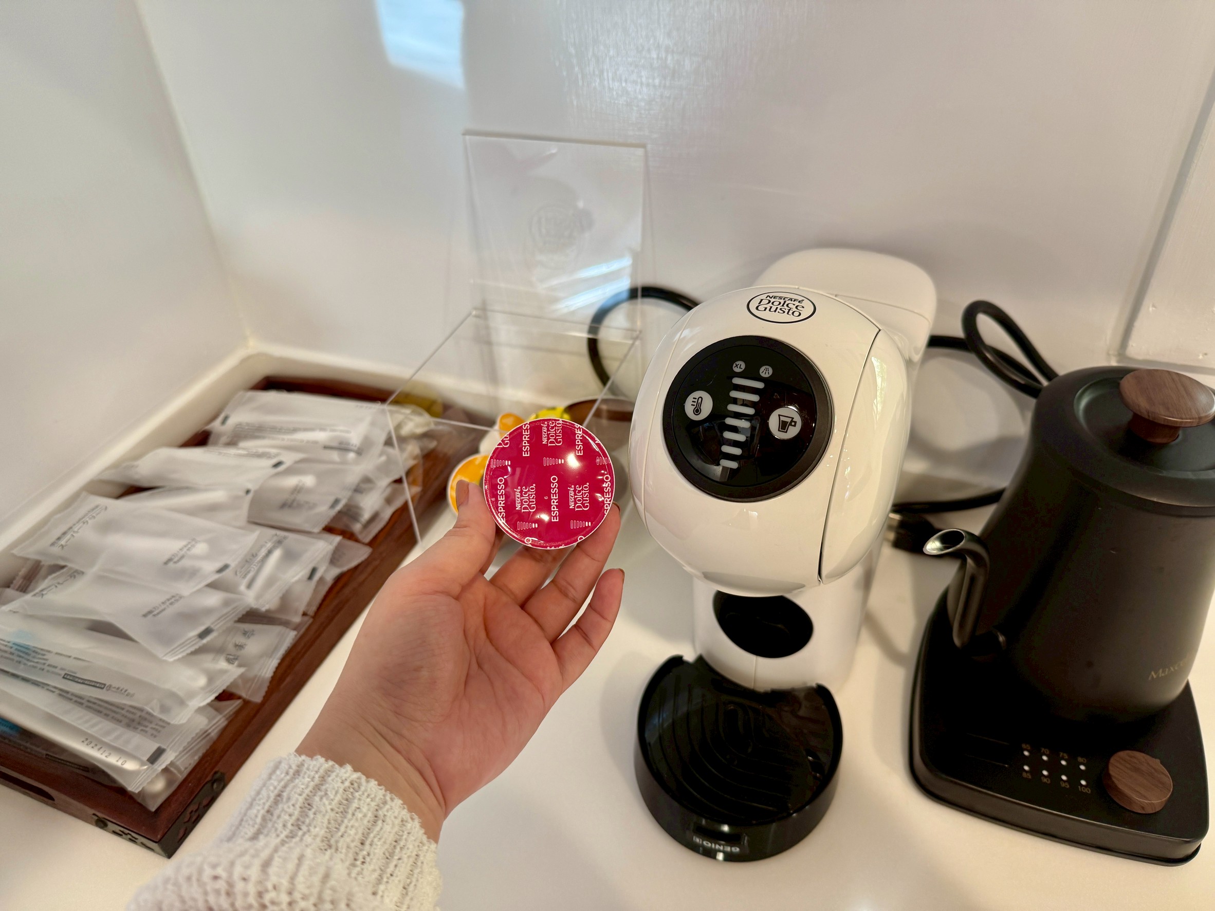 有喝咖啡習慣的這邊還有膠囊咖啡機可以使用,若是忘記帶盥洗用具這邊也有提供,再把錢投到誠實箱就可以了