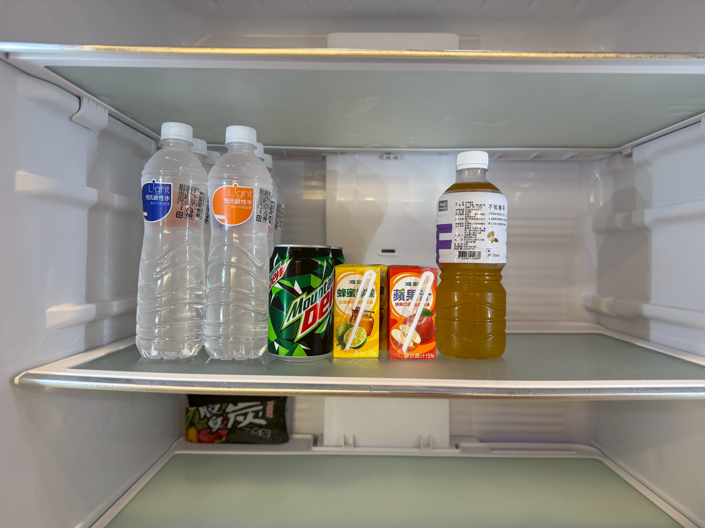 冰箱裡還有擺放免費的迎賓飲料,有水、無糖茶和小朋友喜歡的小果汁,一來就可以馬上解解渴