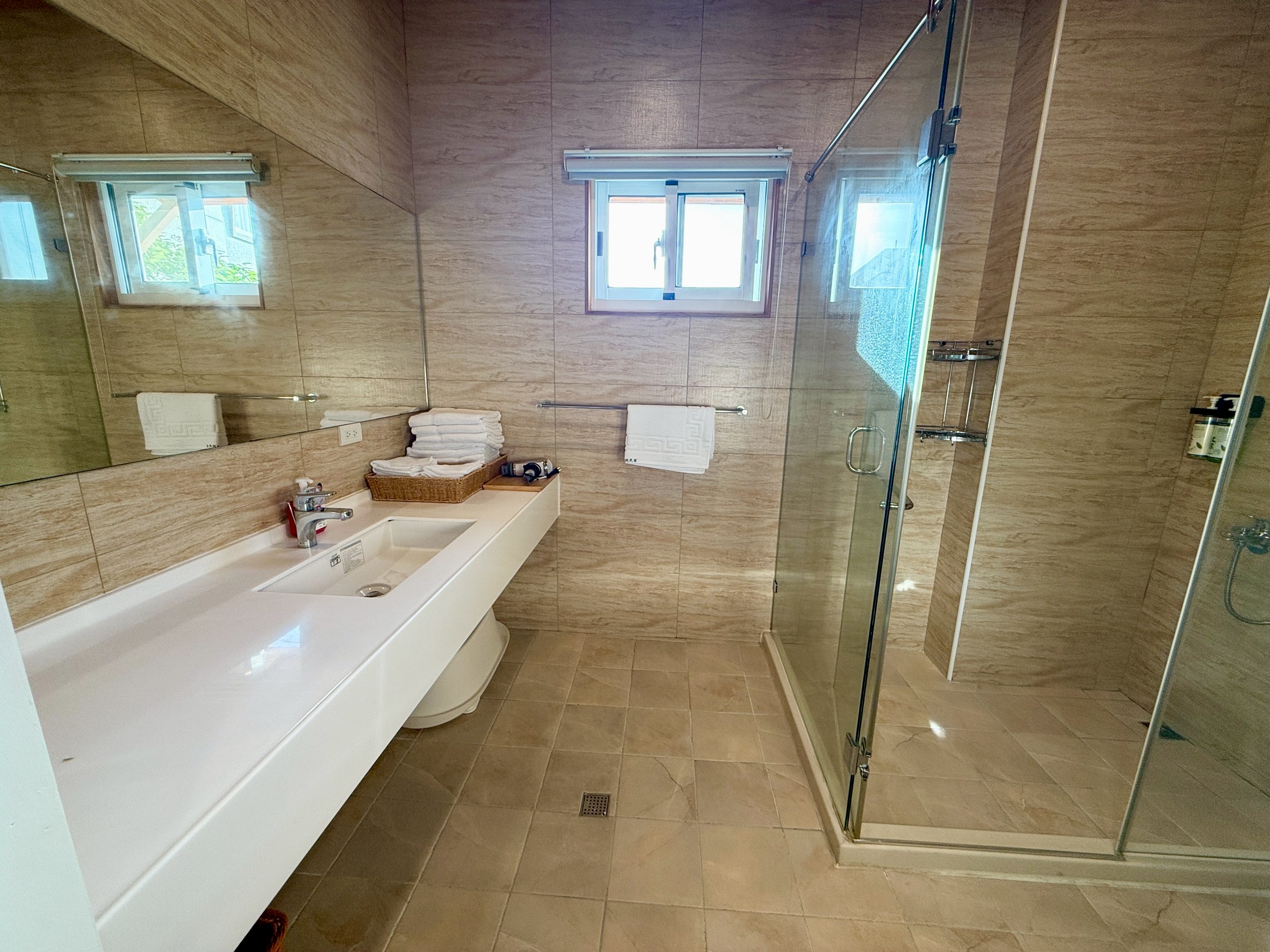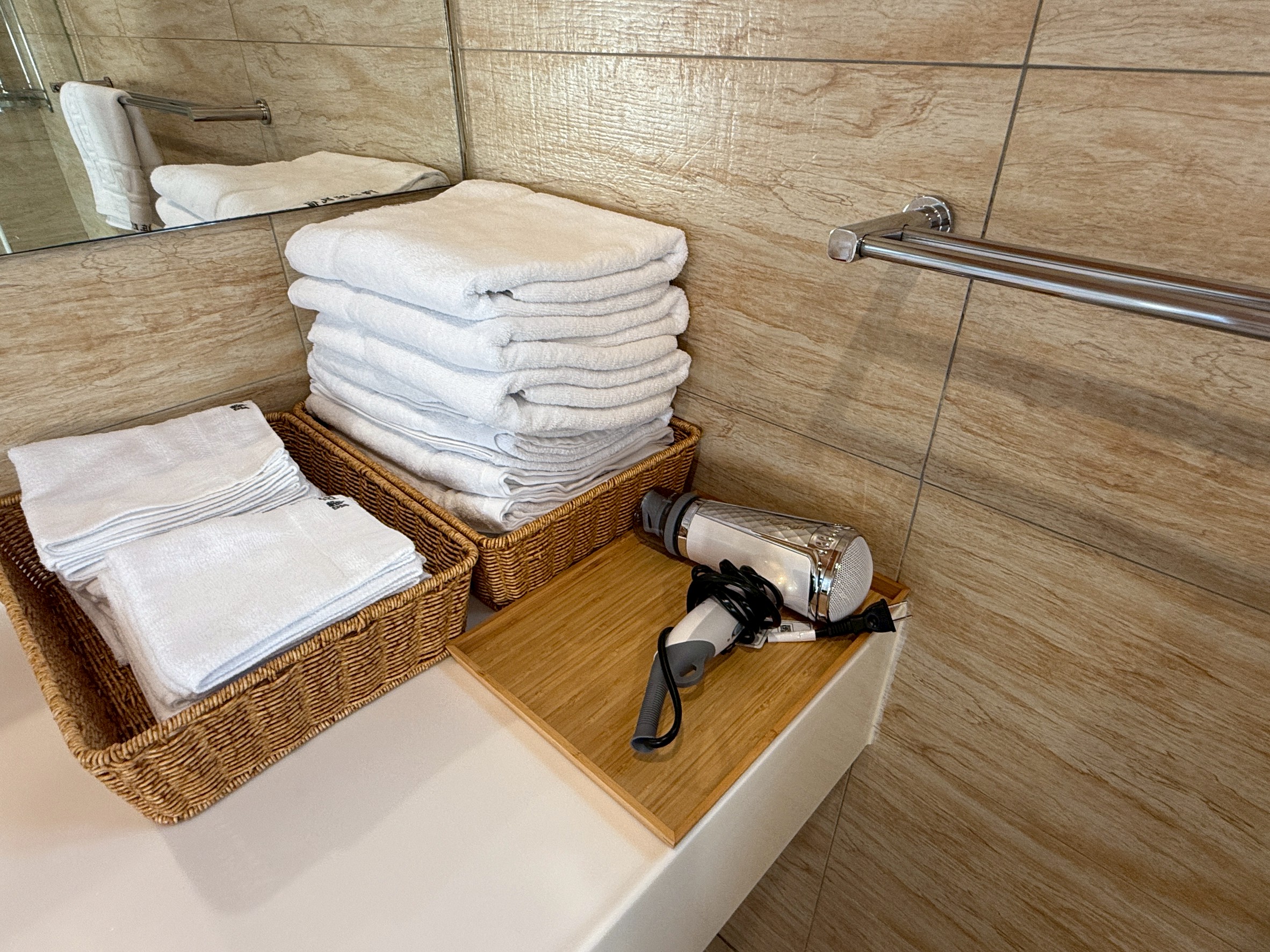 一樓也有一間乾濕分離的浴室有吹風機、毛巾還有洗髮精沐浴乳