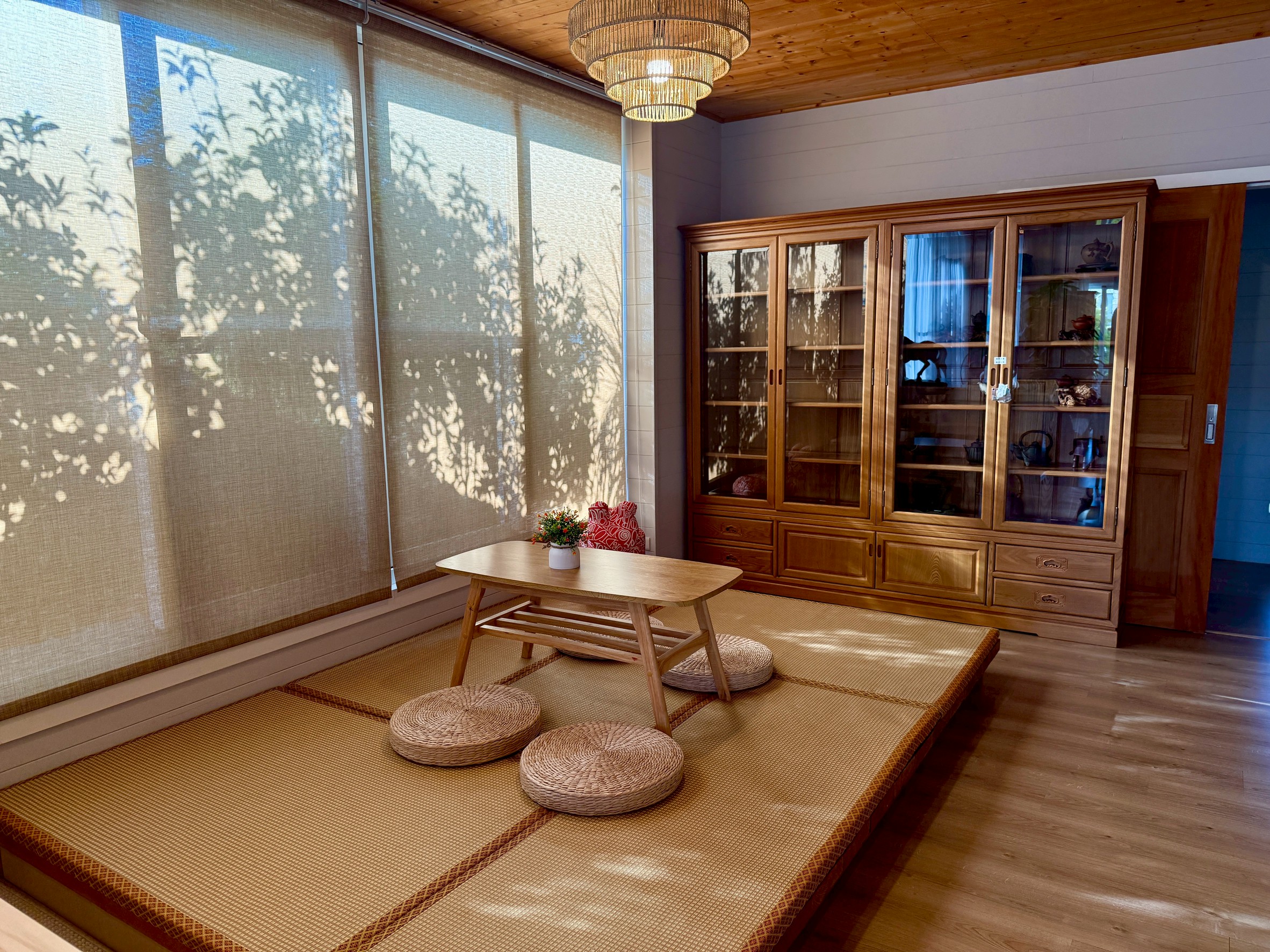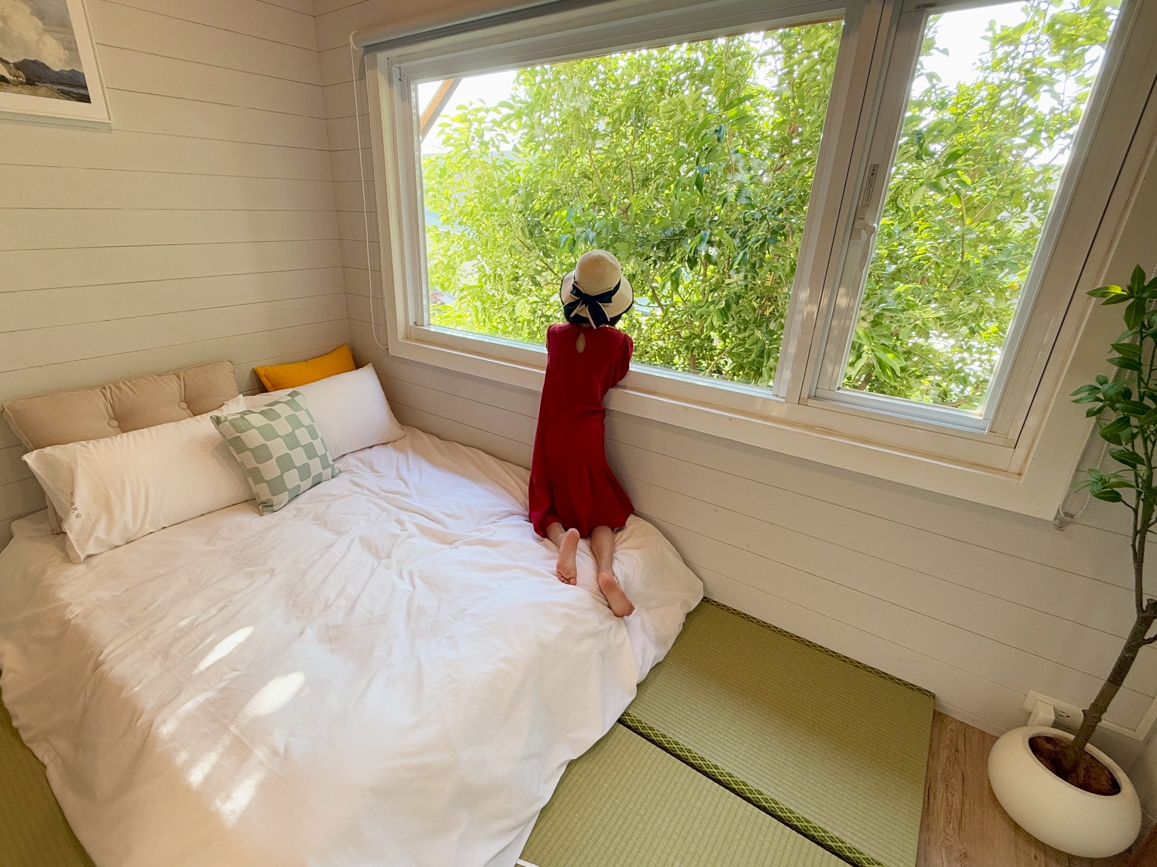 還有一間女兒超喜歡的雙人房,是和室塌塌米的房型,要是有小小孩可以住這間,外面還有綠色的樹超舒服的