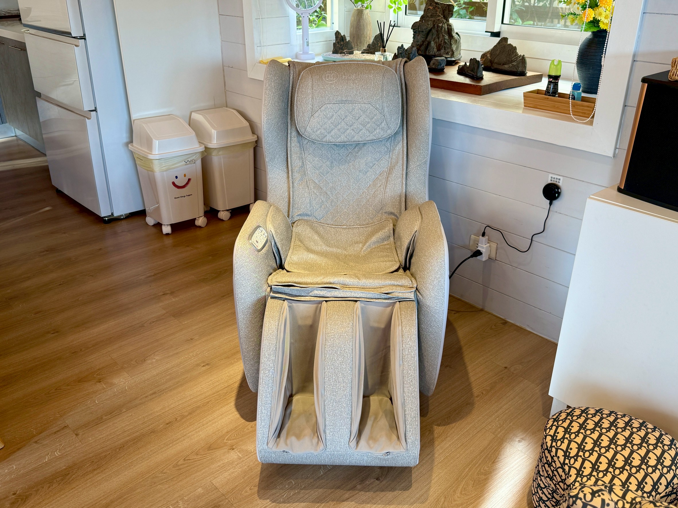 再往裡面走一點有按摩椅、餐桌椅和半開放式廚房還有超大容量的冰箱