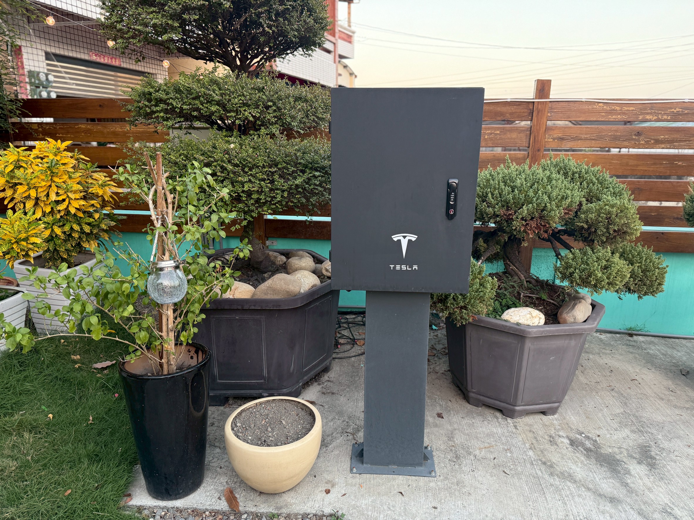 民宿的院子就可以可停放 4 部車,對面還可側停 3 部車,還有特斯拉的充電座,老闆會傳民宿鑰匙的放置處,直接拿鑰匙開門就可以了喔