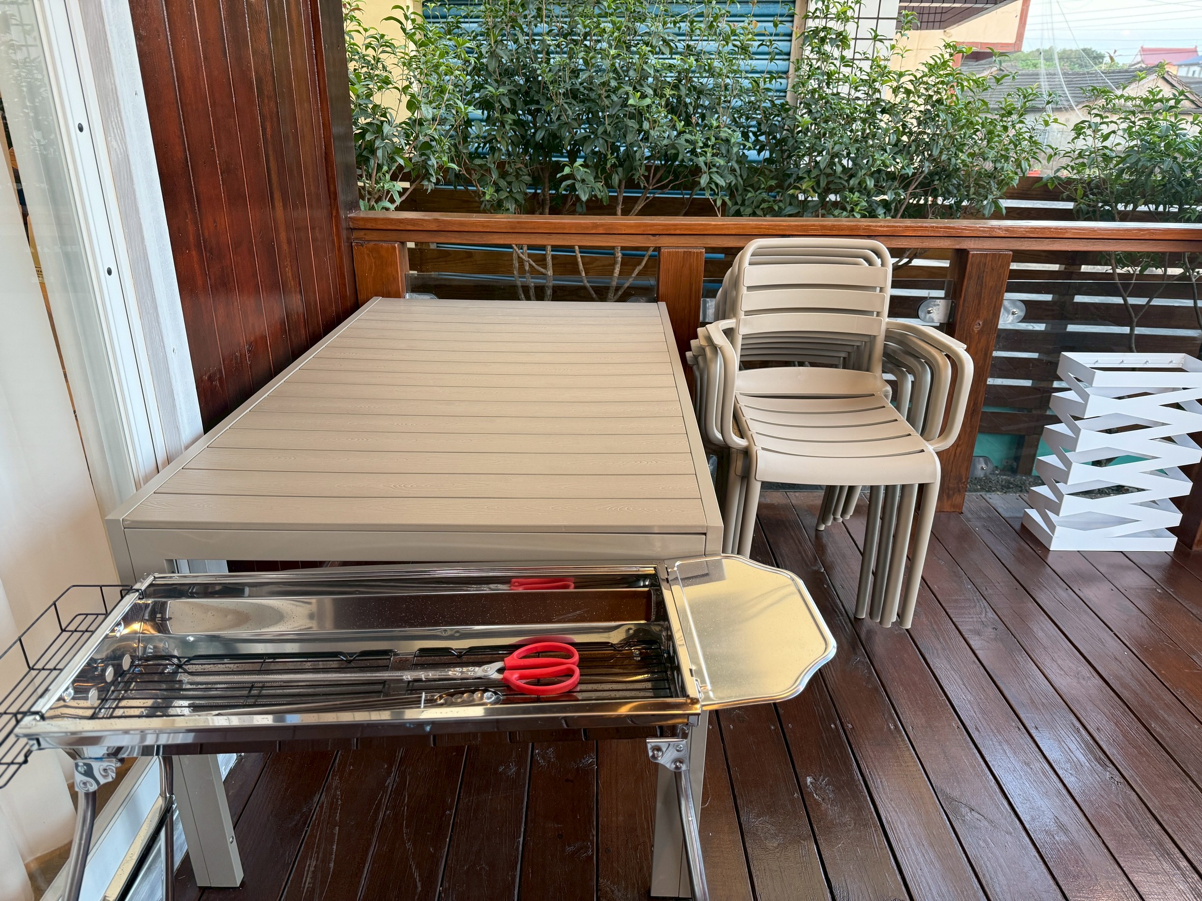 門口就有提供方便在戶外烤肉的器具和桌椅