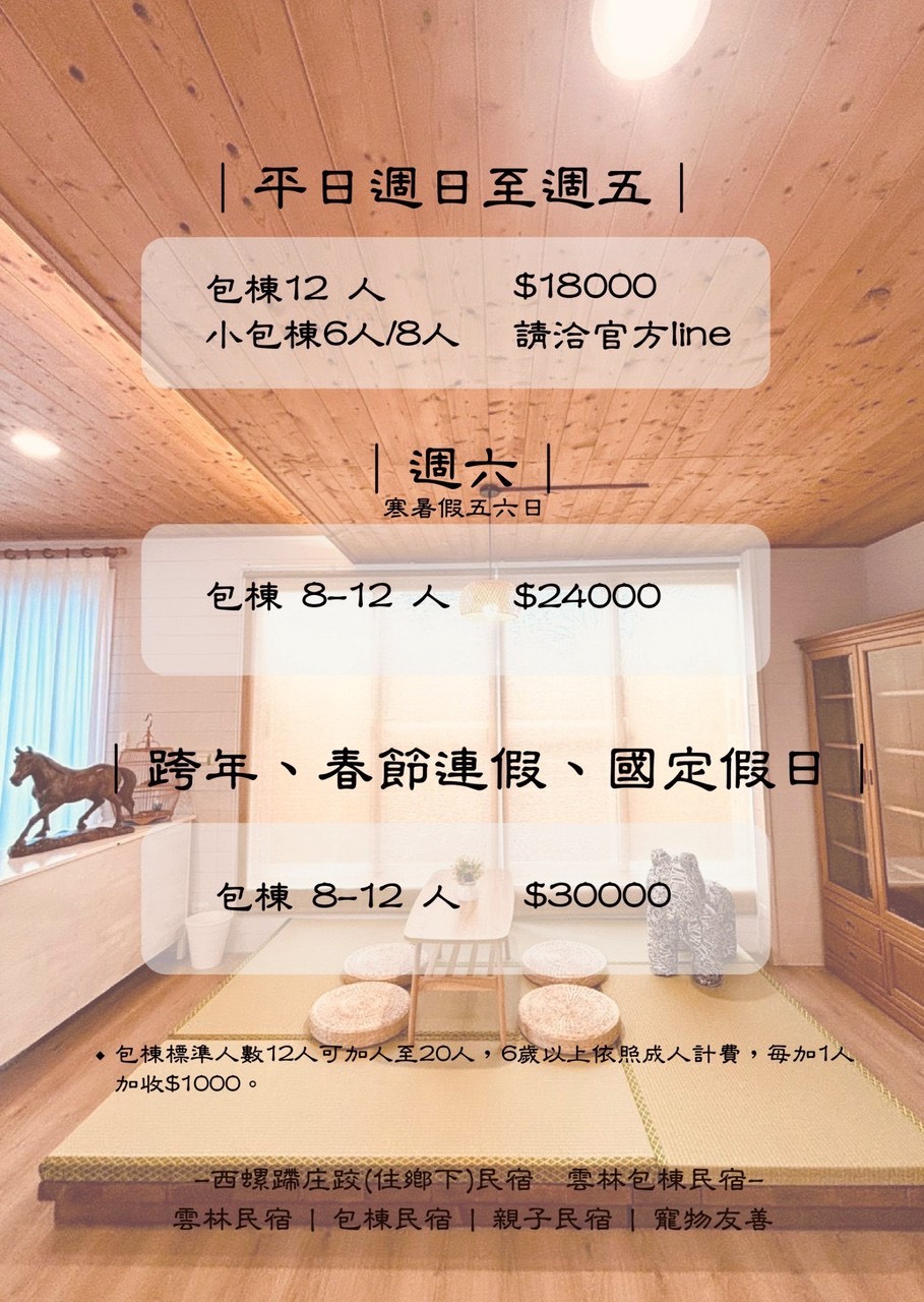 蹛庄跤(住鄉下)木屋包棟民宿︱價格表
